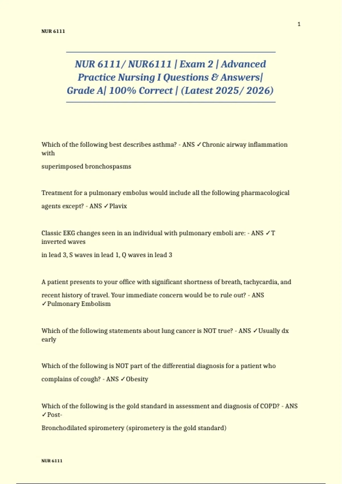 PASS The First Time! Nursing school is demanding, and quality study materials make the difference. I provide well-organized, exam-focused nursing resources designed to help you understand key concepts, prepare efficiently, and perform confidently in assessments. These materials are carefully structured to align with nursing curricula and real exam expectations, trusted by students who want clarity, accuracy, and results. Nursing school is hard but I'm here to simplify it for you! #Study guides #Exam preparation #Test materials #Study documents #Exam resources #Test study aids #Study notes #Exam study guides #Study materials #Exam papers