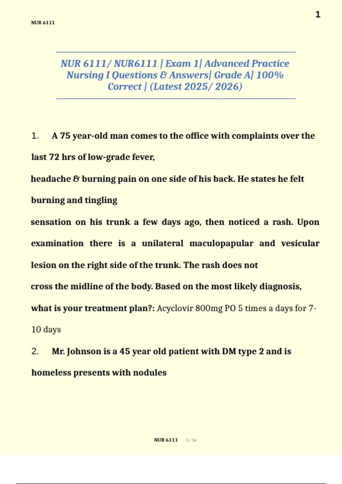 NUR 6111/ NUR6111 | Exam 1| Advanced Practice