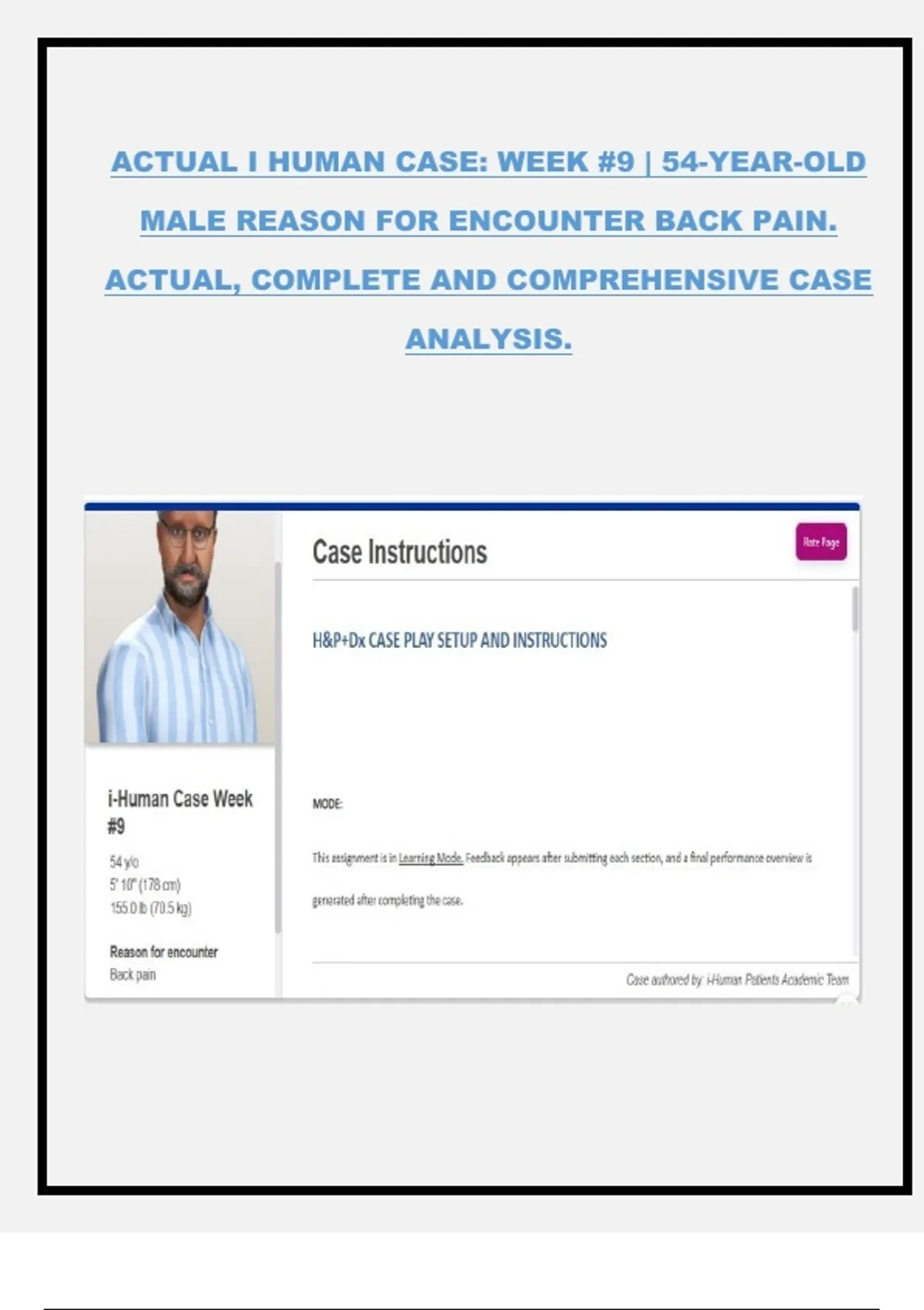 ACTUAL I HUMAN CASE: WEEK #9 | 54-YEAR-OLD MALE REASON FOR ENCOUNTER BACK PAIN. ACTUAL, COMPLETE AND COMPREHENSIVE CASE ANALYSIS.