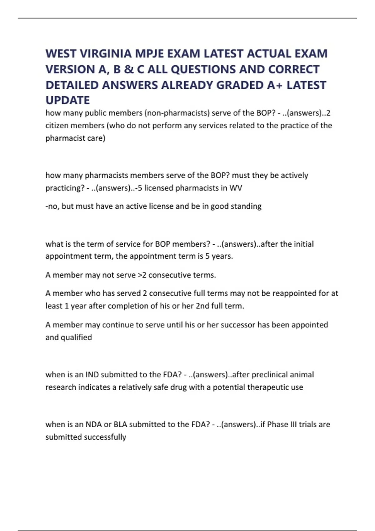 VERSION A, B & C ALL QUESTIONS AND CORRECT