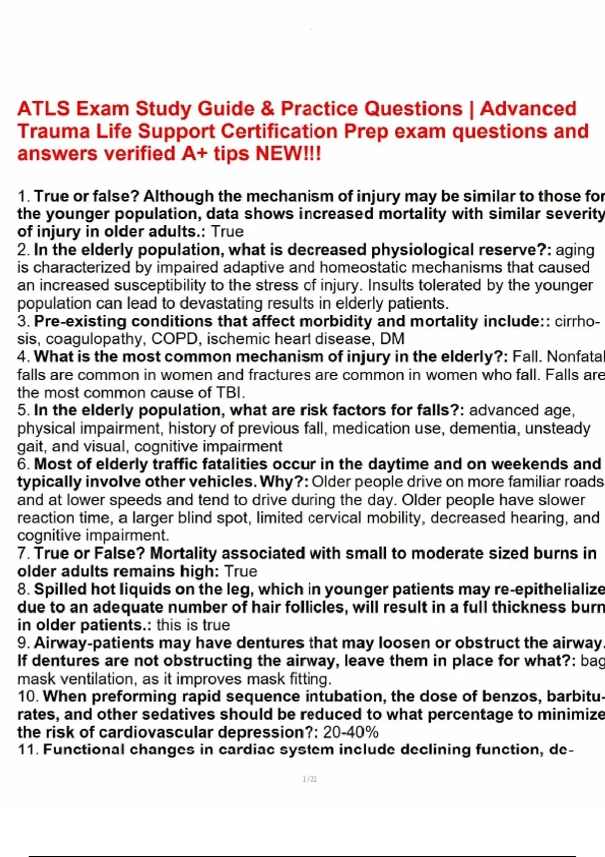 ATLS Exam Study Guide & Practice Questions Advanced Trauma Life Support Certification Prep exam questions and answers verified A+ tips NEW!!!.pdf