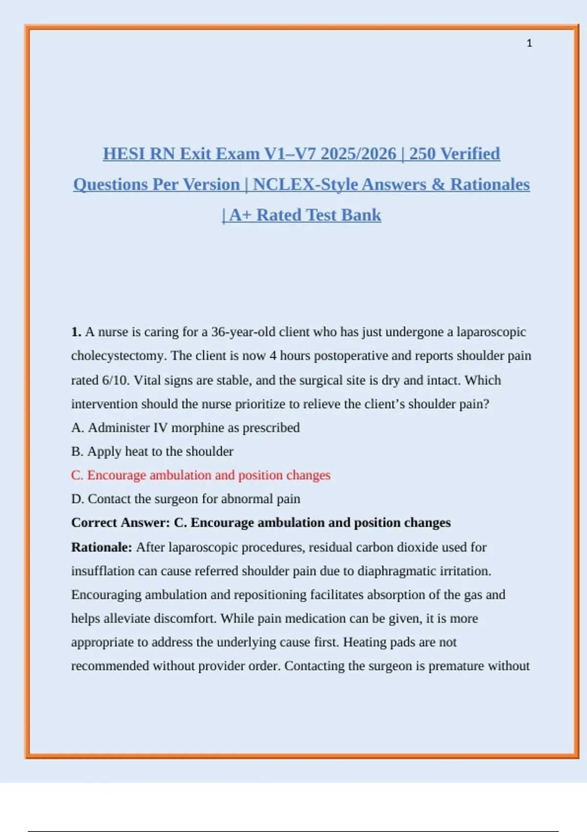 HESI RN Exit Exam V1–V7 2025/2026 | 250 Verified