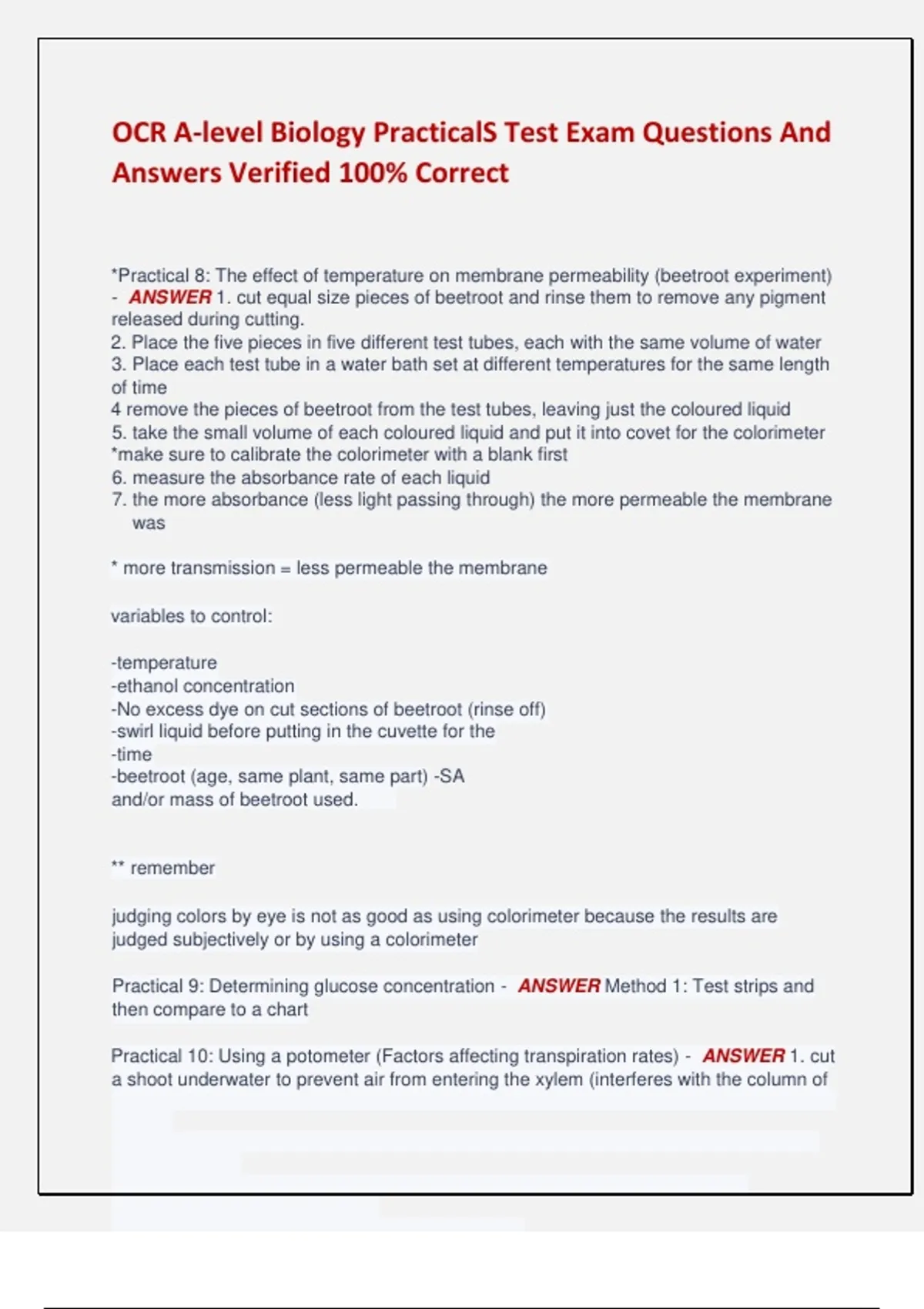 *Practical 8: The effect of temperature on membrane permeability (beetroot experiment)