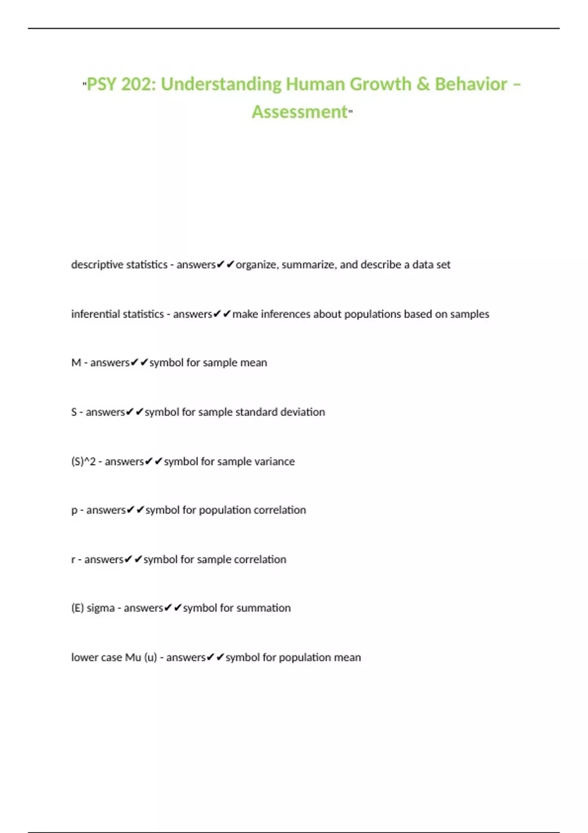 "PSY 202: Understanding Human Growth & Behavior – Assessment"