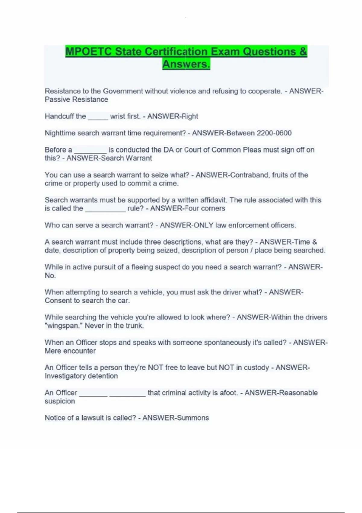 MPOETC State Certification Exam Questions & Answers.MPOETC State Certification Exam Questions & Answers.