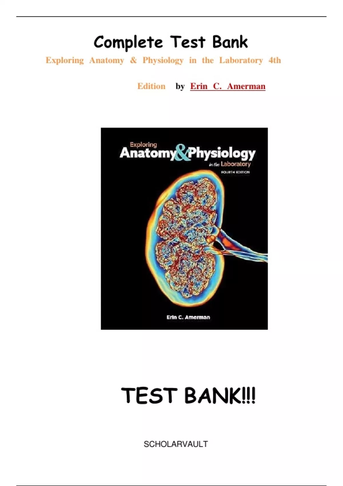 Test Bank - Exploring Anatomy & Physiology in the Laboratory 4th Edition by Erin C. Amerman, All Chapters| Complete Guide A+