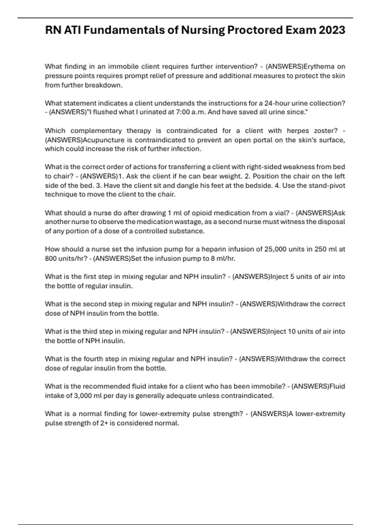 , RN ATI Fundamentals of Nursing Proctored Exam 2023