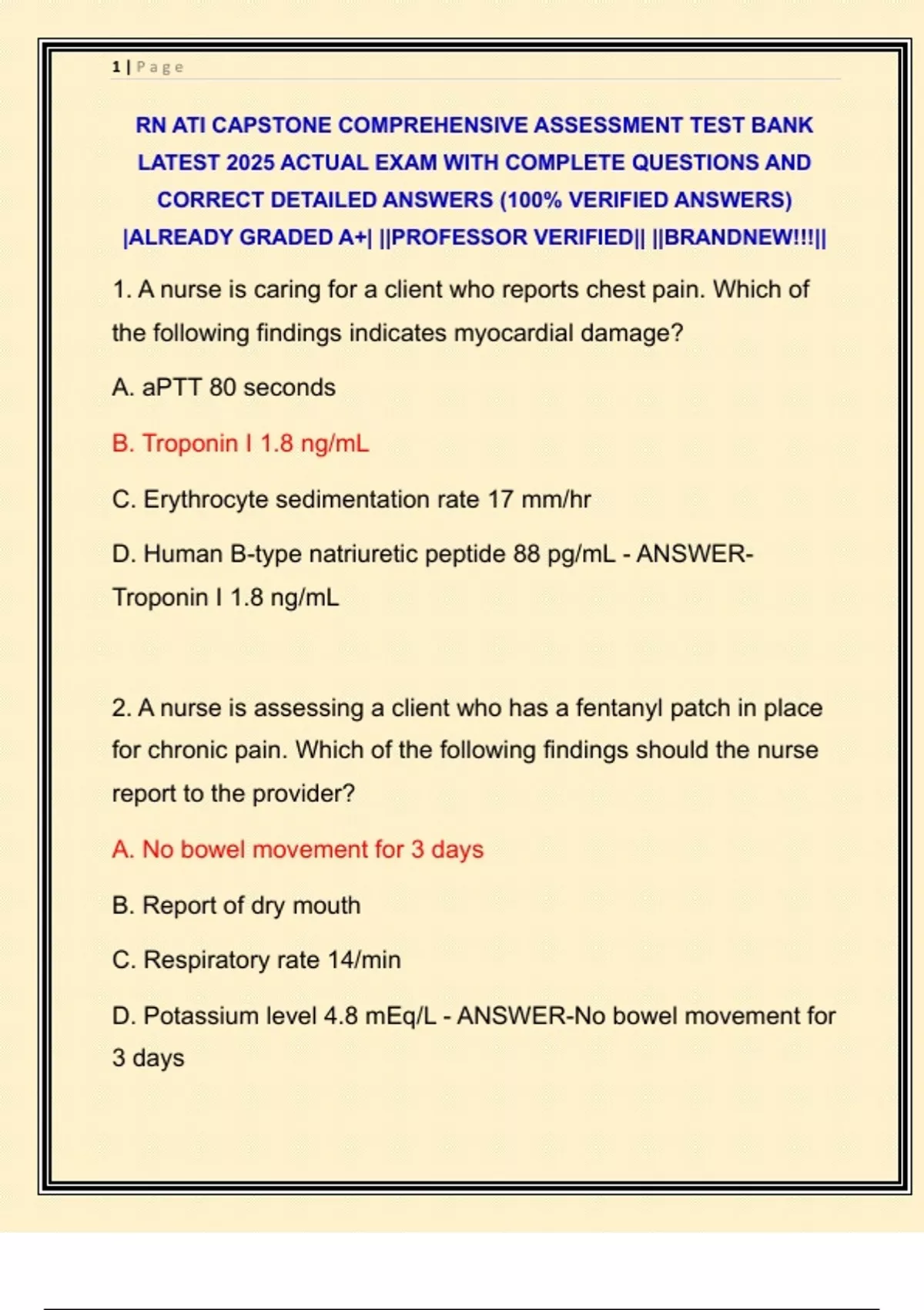 1. A nurse is caring for a client who reports chest pain. Which of