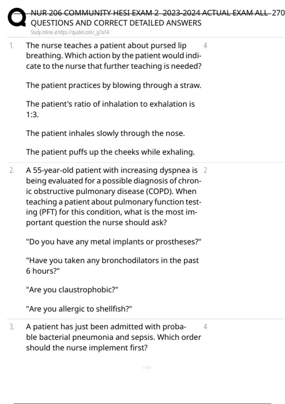 NUR 206 COMMUNITY HESI EXAM 2 2023-2024 ACTUAL EXAM ALL 270