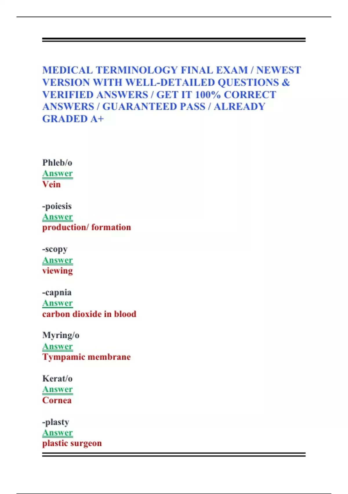 MEDICAL TERMINOLOGY FINAL EXAM / NEWEST