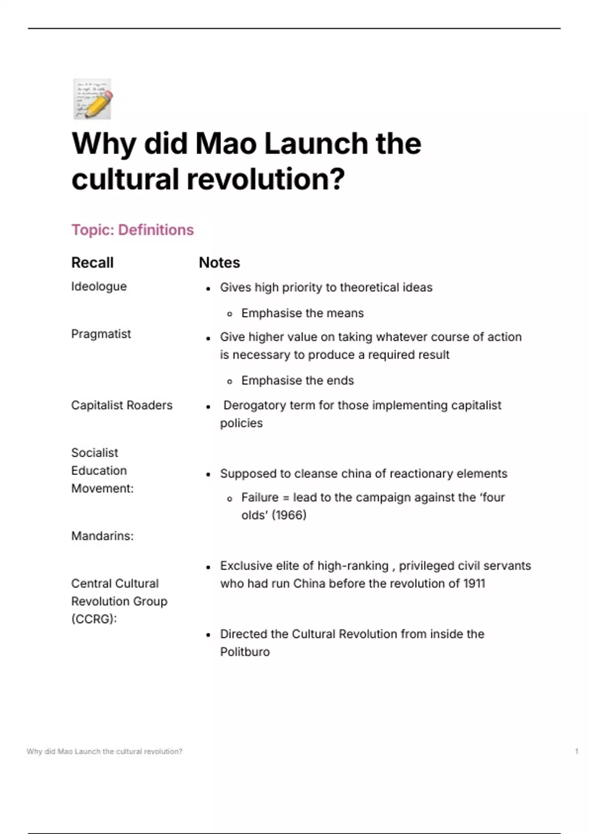Why did Mao Launch the cultural revolution? 1