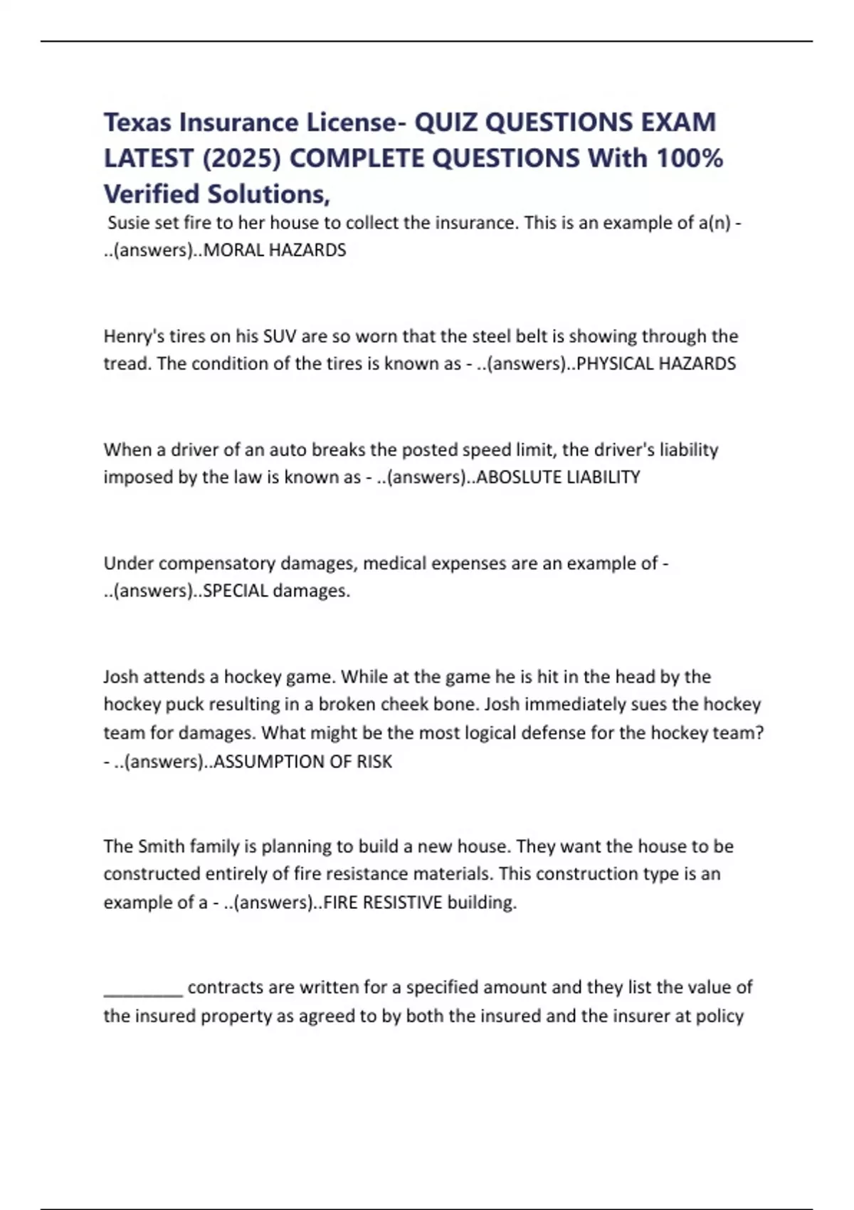 Texas Insurance License- QUIZ QUESTIONS EXAM LATEST (2025) COMPLETE QUESTIONS With 100% Verified Solutions,