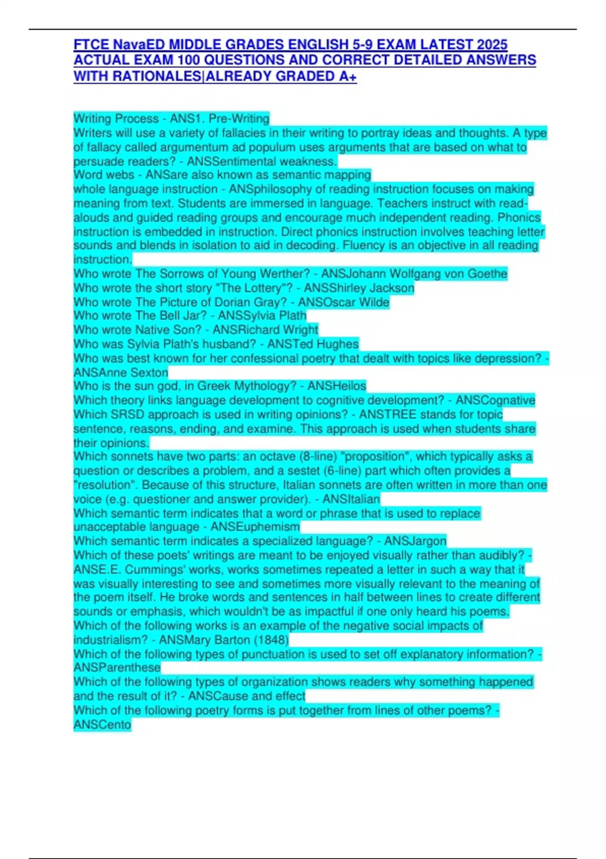 ,FTCE NavaED MIDDLE GRADES ENGLISH 5-9 EXAM LATEST 2025