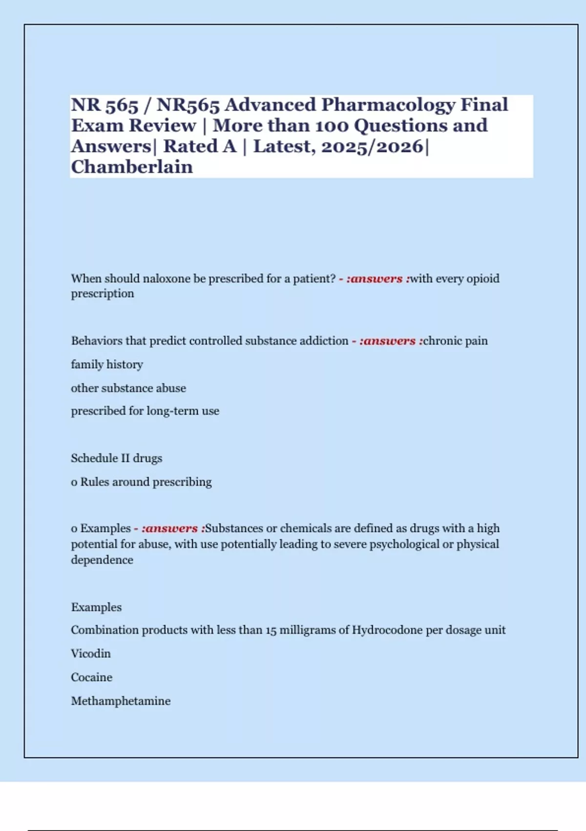 Behaviors that predict controlled substance addiction - :answers :chronic pain