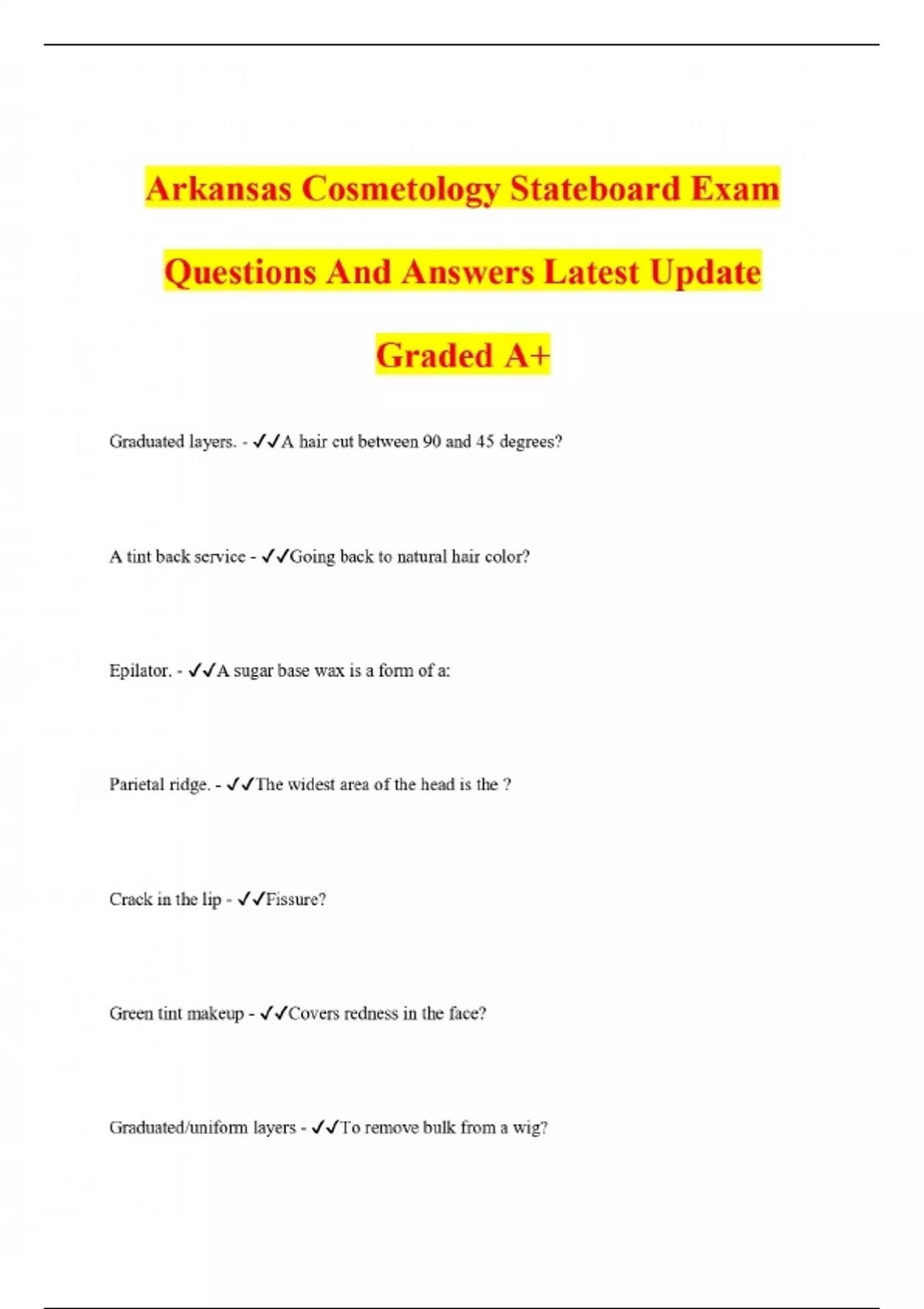 Arkansas Cosmetology Stateboard Exam Questions And Answers Latest Update Graded A+