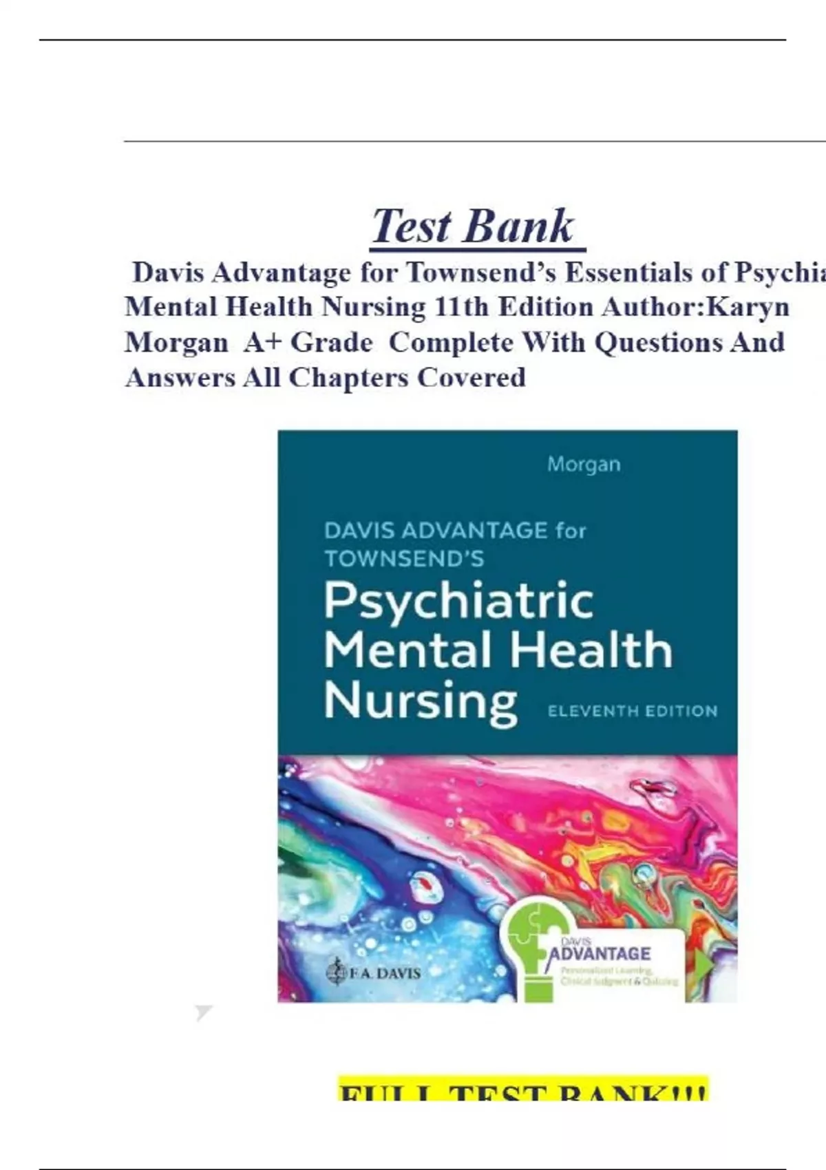 Test Bank - Townsend's Psychiatric Mental Health Nursing, 11th Edition (Morgan, 2024), Chapter 1-43 + Next-Generation NCLEX Case Studies with answers | All Chapters