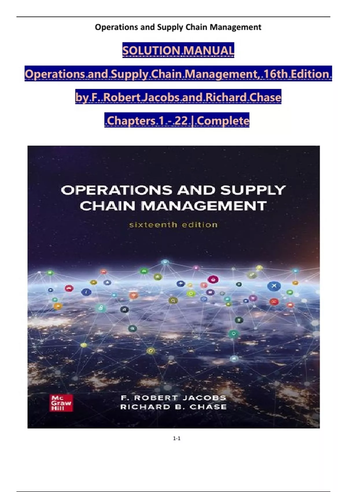 Solution Manual For Operations and Supply Chain Management, 16th Edition by F. Robert Jacobs and Richard Chase, Verified Chapters 1 - 22, Complete Newest Version