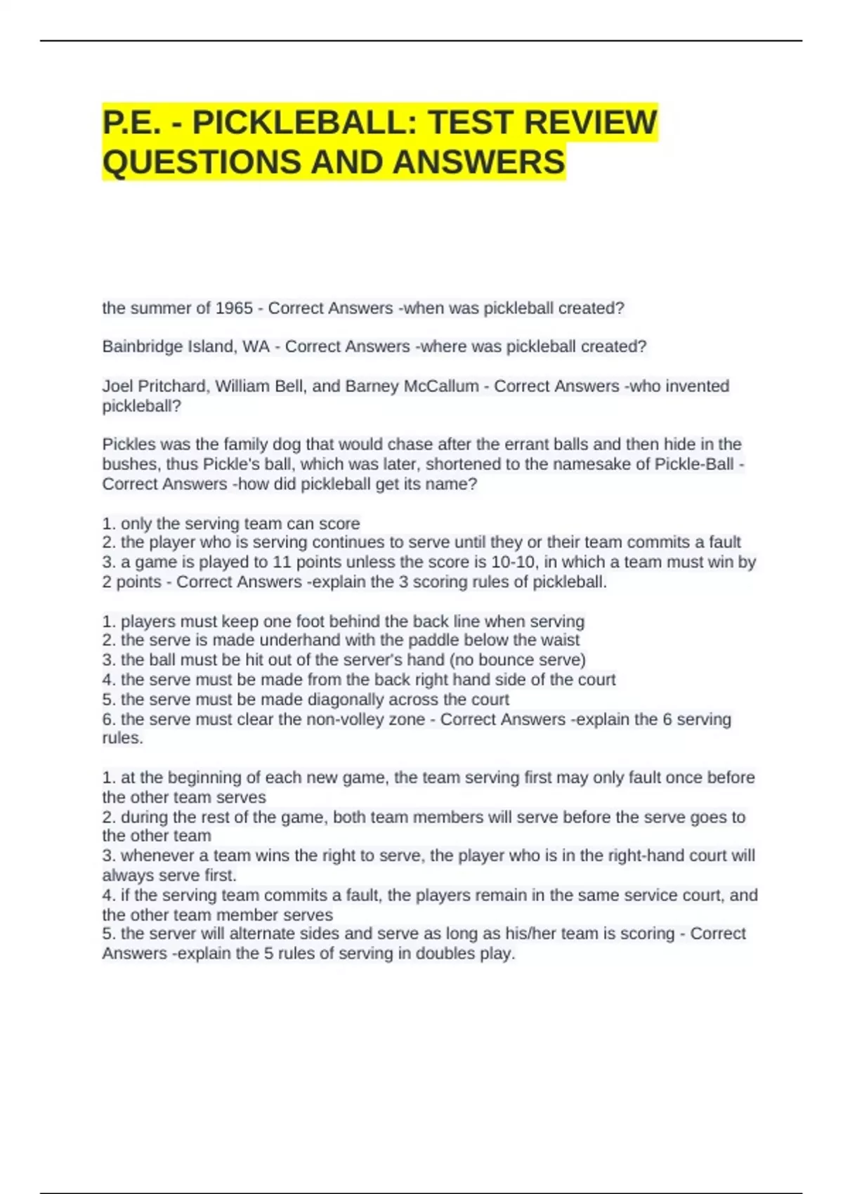 the summer of 1965 - Correct Answers -when was pickleball created?
