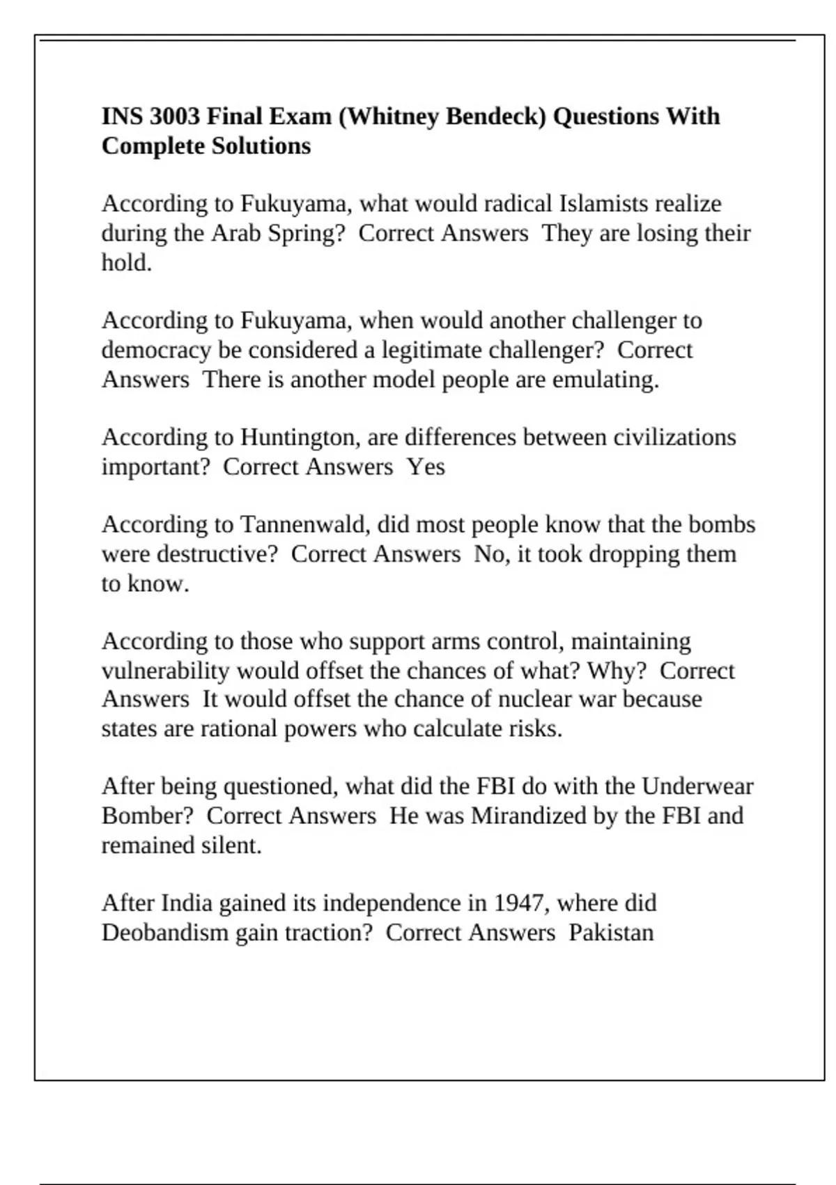 INS 3003 Final Exam (Whitney Bendeck) Questions With Complete Solutions