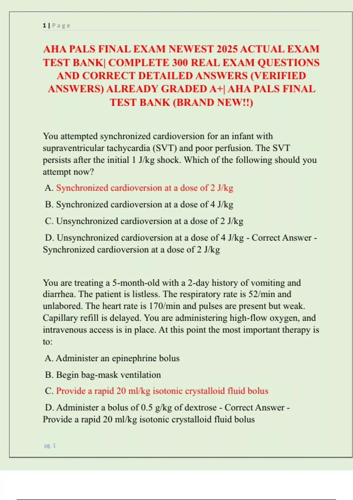 ANSWERS) ALREADY GRADED A+| AHA PALS FINAL