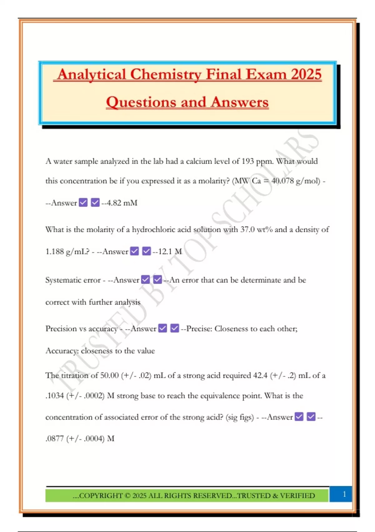 Analytical Chemistry Final Exam 2025 Questions and Answers