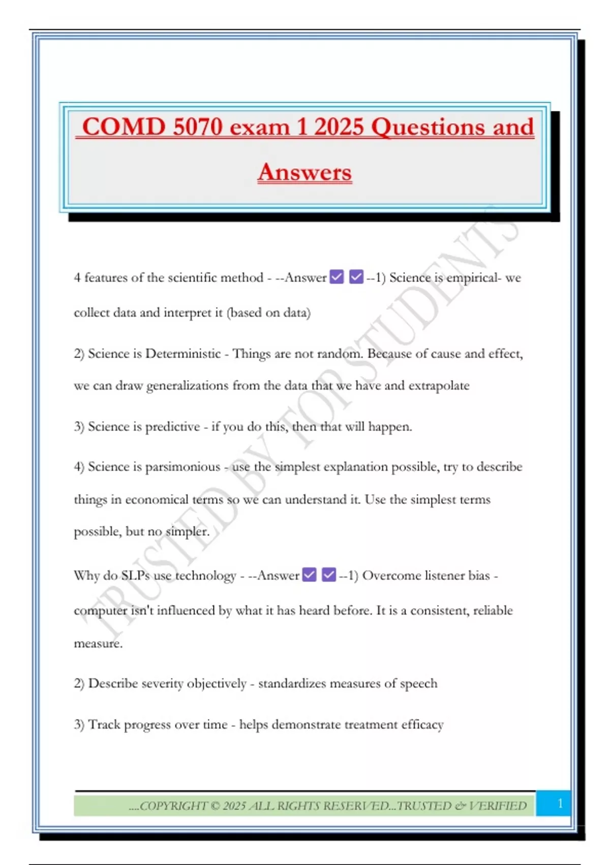 COMD 5070 exam 1 2025 Questions and