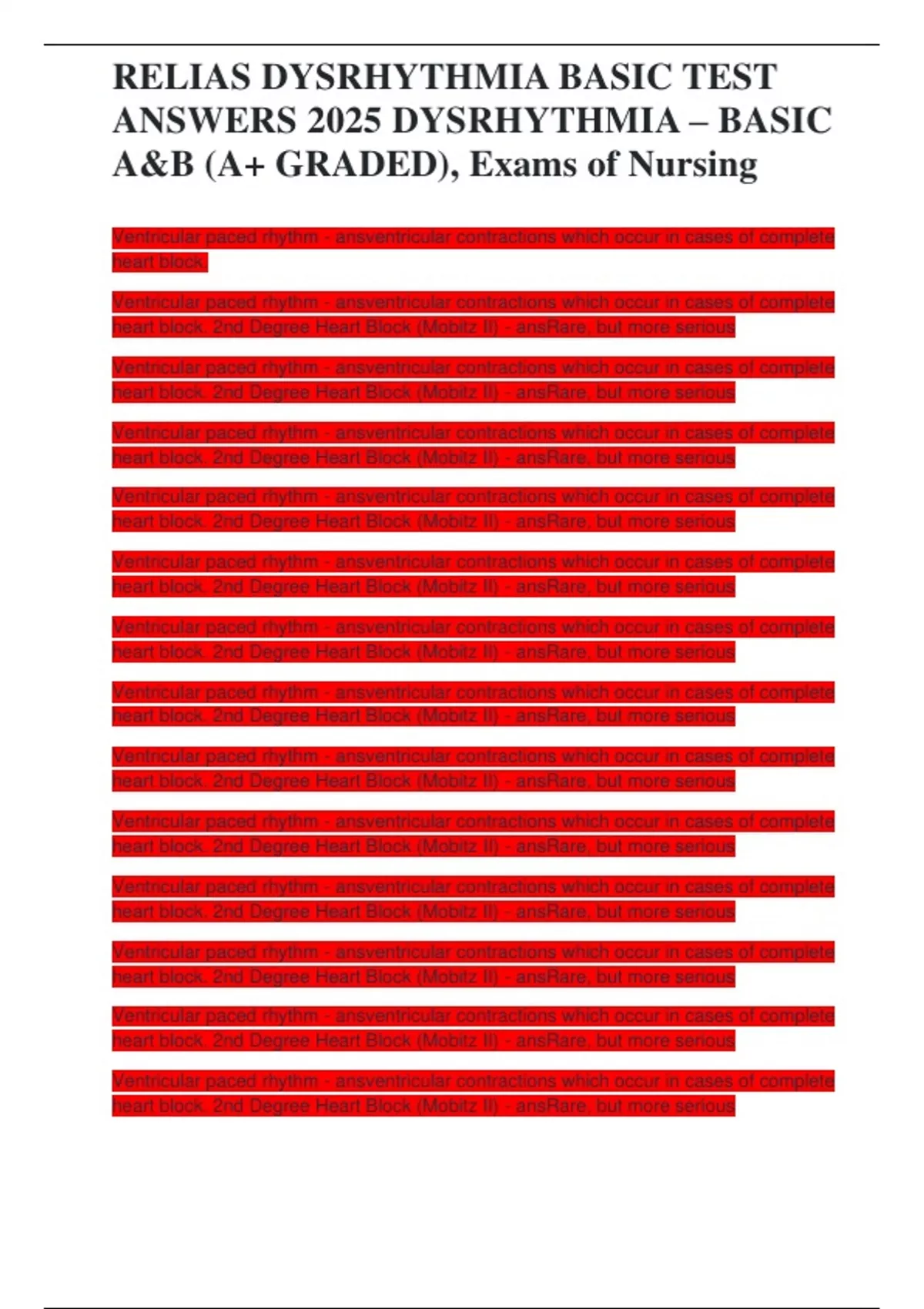 RELIAS DYSRHYTHMIA BASIC TEST ANSWERS 2024 DYSRHYTHMIA – BASIC A&B (A+ GRADED), Exams of