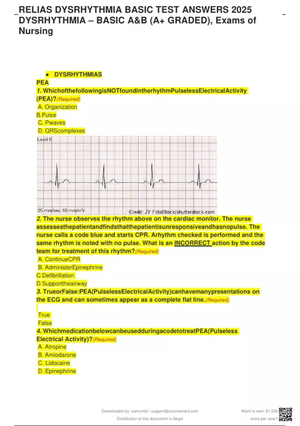 , RELIAS DYSRHYTHMIA BASIC TEST ANSWERS 2025