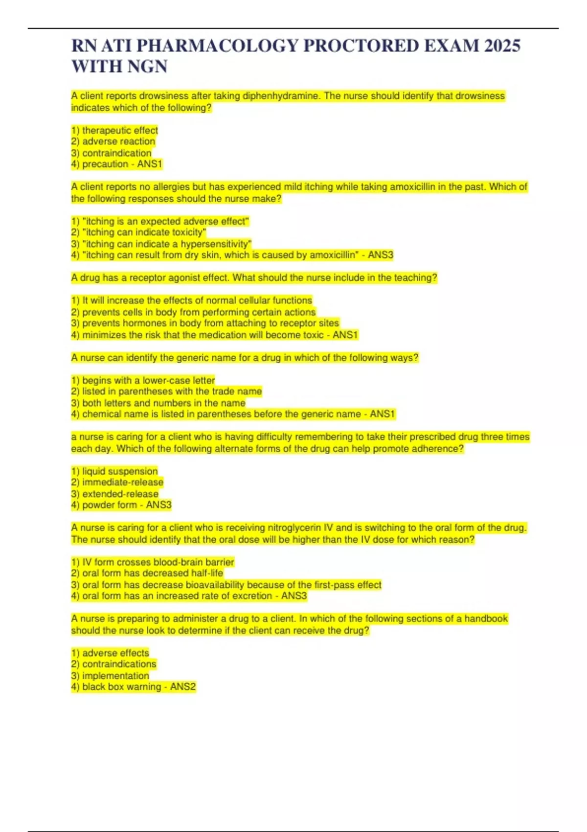 , RN ATI PHARMACOLOGY PROCTORED EXAM 2025