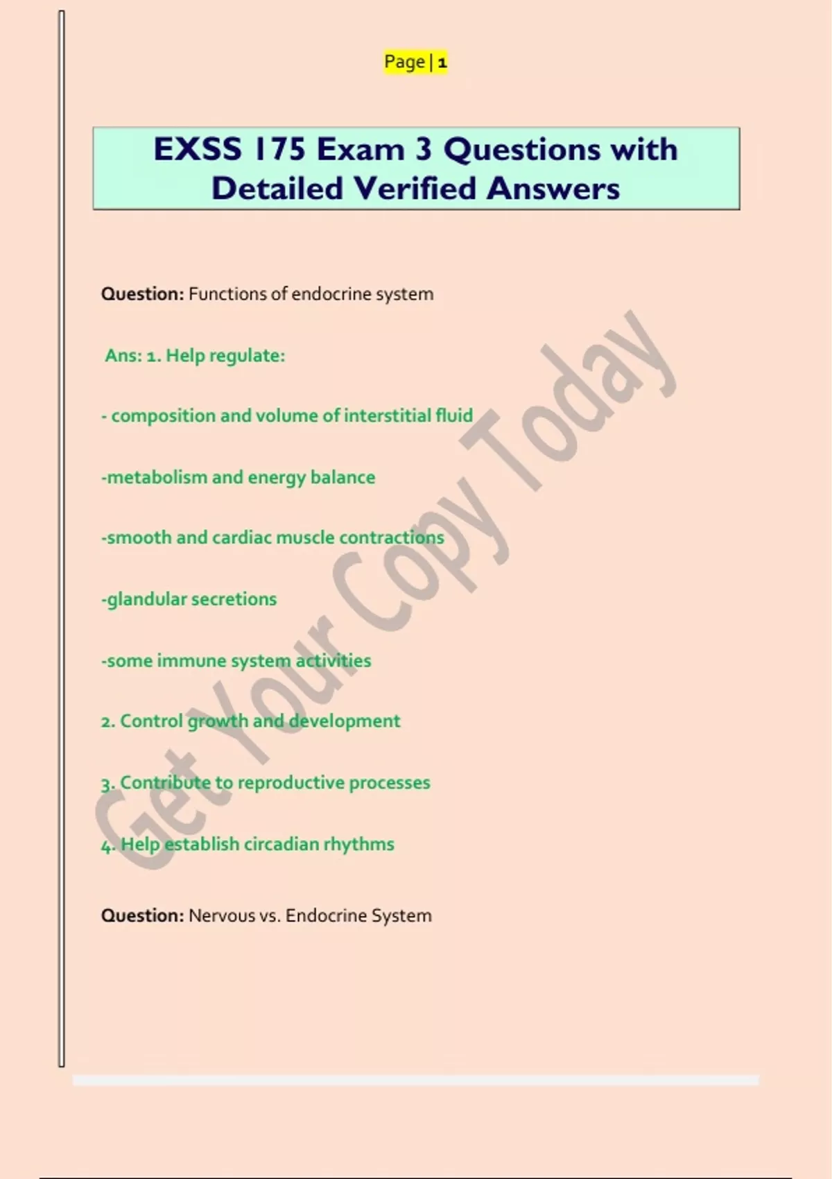 EXSS 175 Exam 3 Questions with Detailed Verified Answers