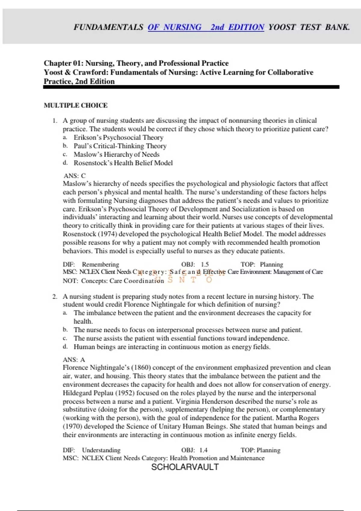 FUNDAMENTALS OF NURSING 2nd EDITION YOOST TEST BANK.