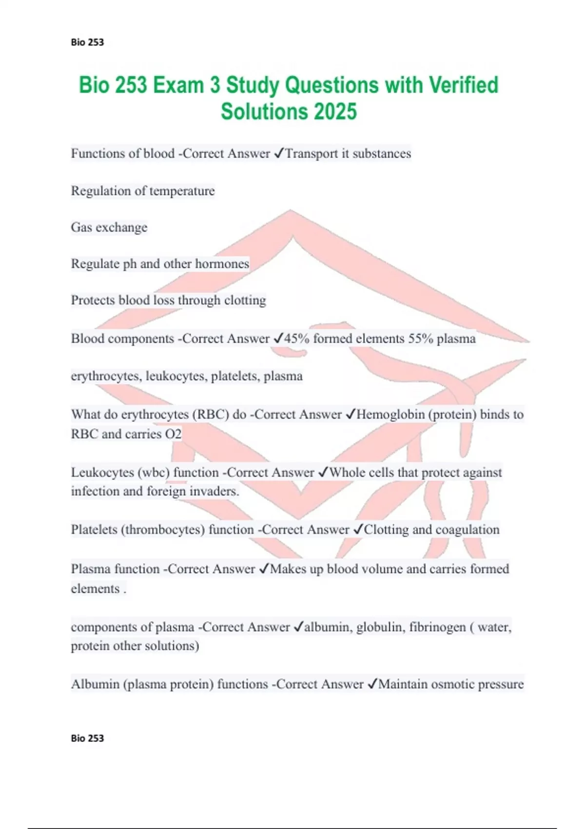 Bio 253 Exam 3 Study Questions with Verified