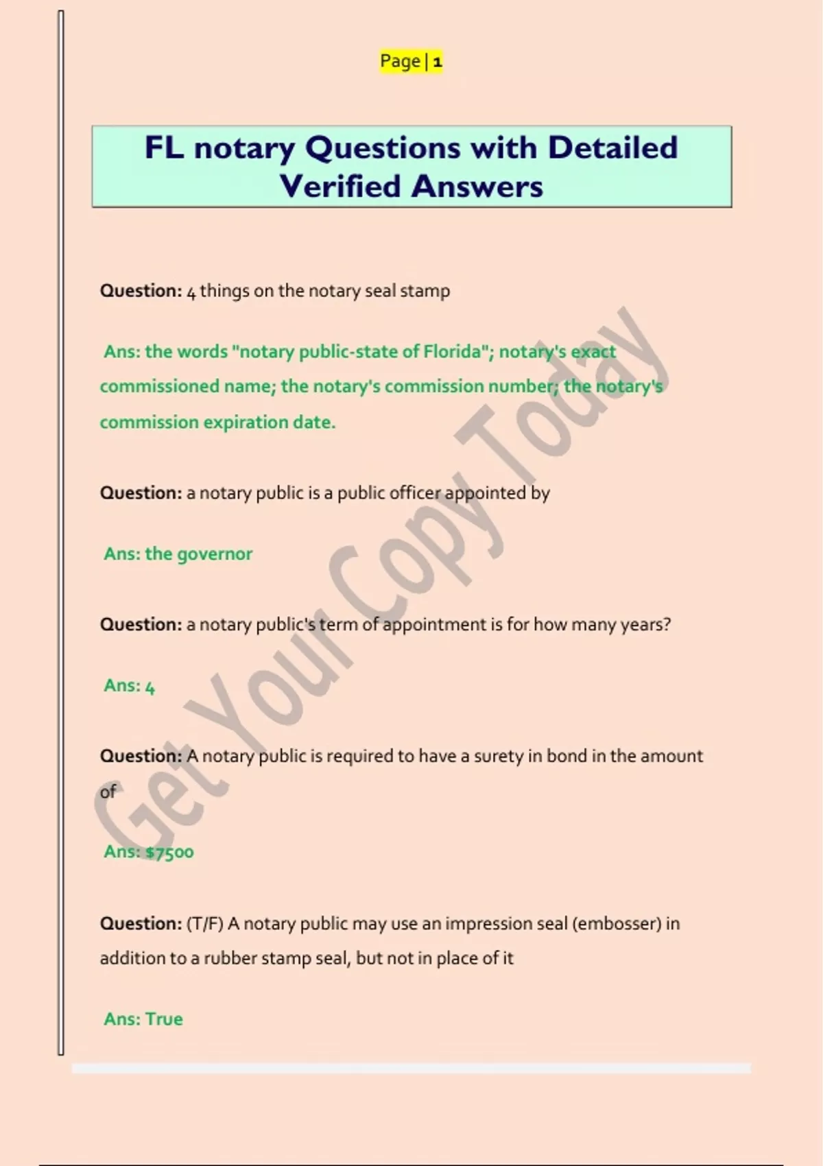 FL notary Questions with Detailed