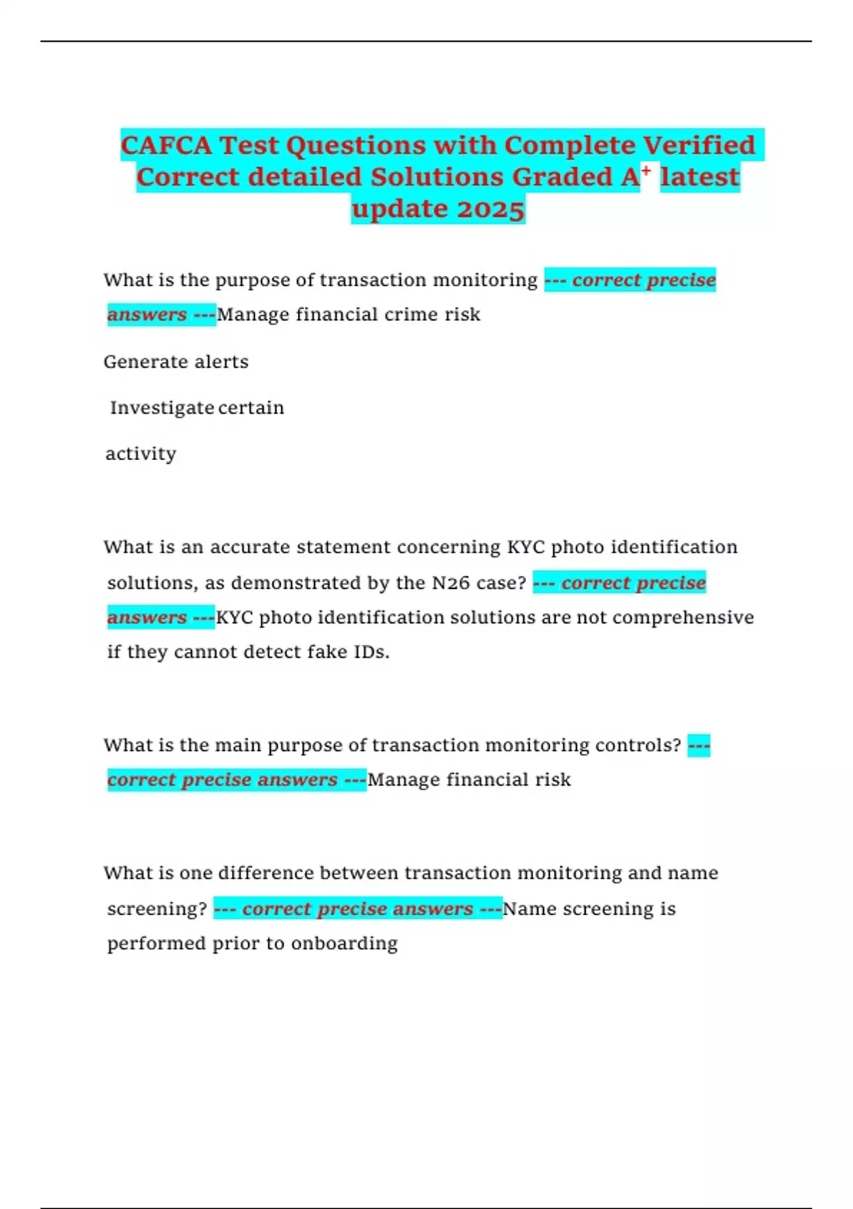 CAFCA Test Questions with Complete Verified