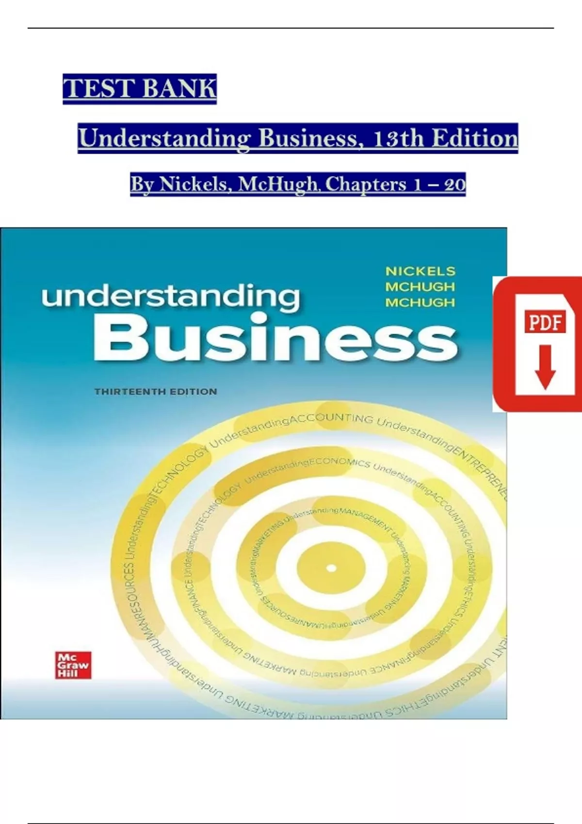 TEST BANK for Understanding Business, 13th Edition by William Nickels and McHugh, All Chapters 1-20 ||Complete A+ Guide
