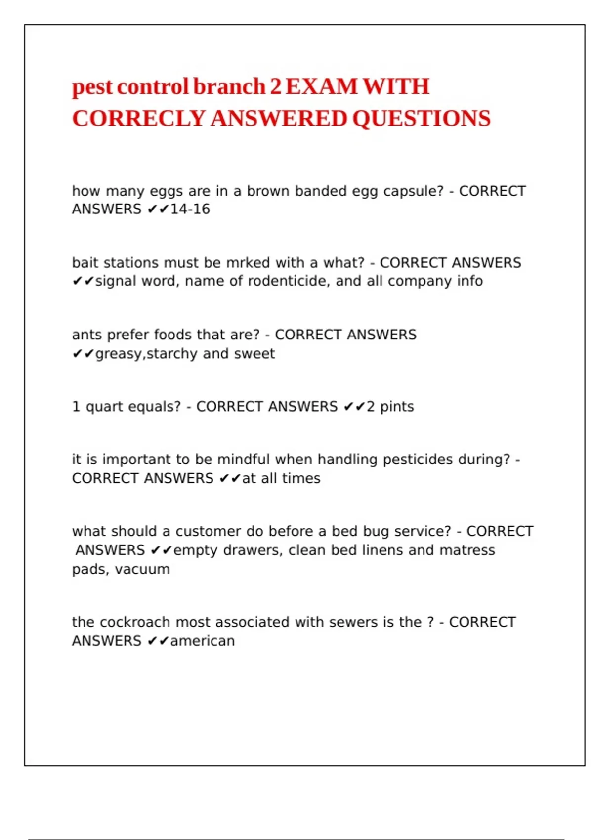 pest control branch 2 EXAM WITH CORRECLY ANSWERED QUESTIONS