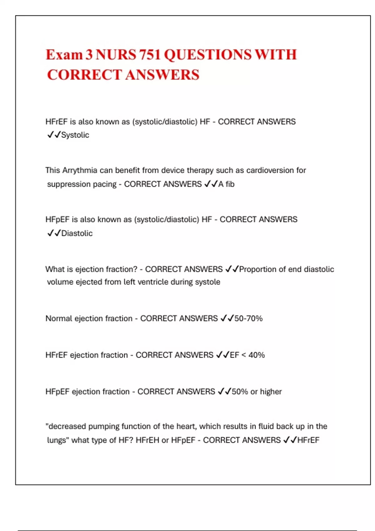 CORRECT ANSWERS ✔✔Cardiomyopathy