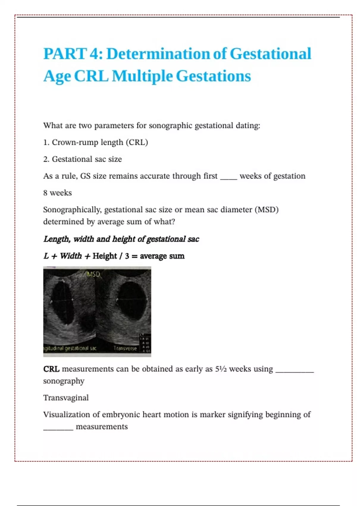 Sonographically, gestational sac size or mean sac diameter (MSD) !| !| !| !| !| !| !| !| !|