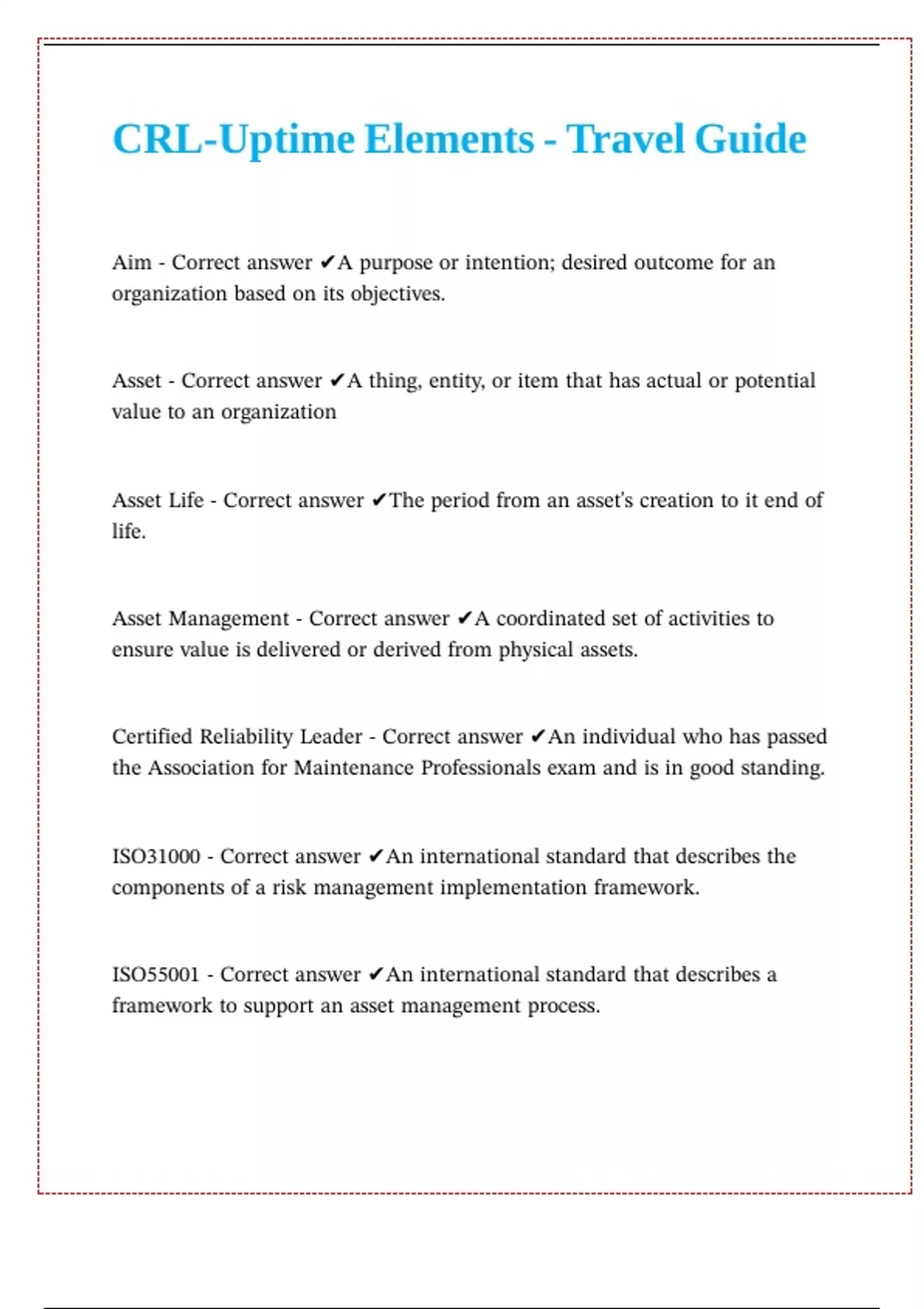 Certified Reliability Leader - Correct answer ✔An individual who has passed