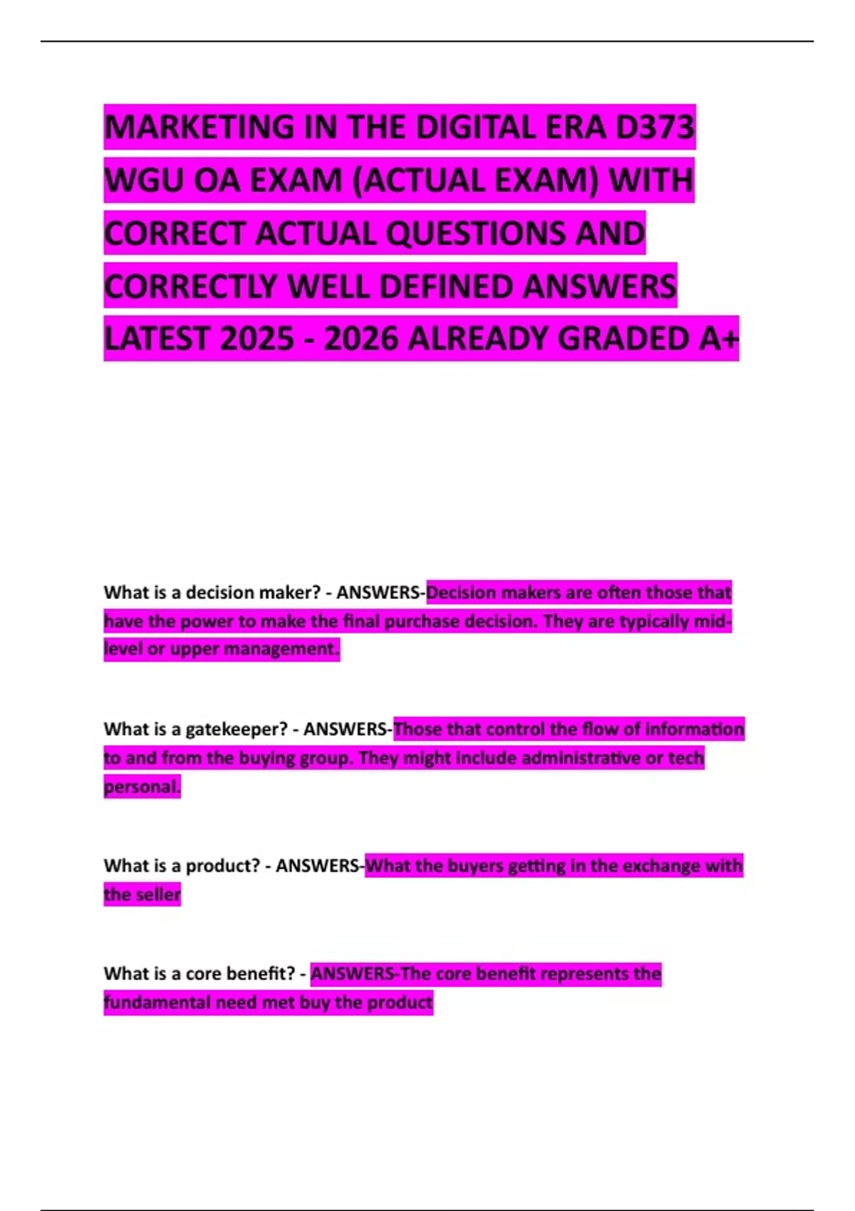WGU OA EXAM (ACTUAL EXAM) WITH