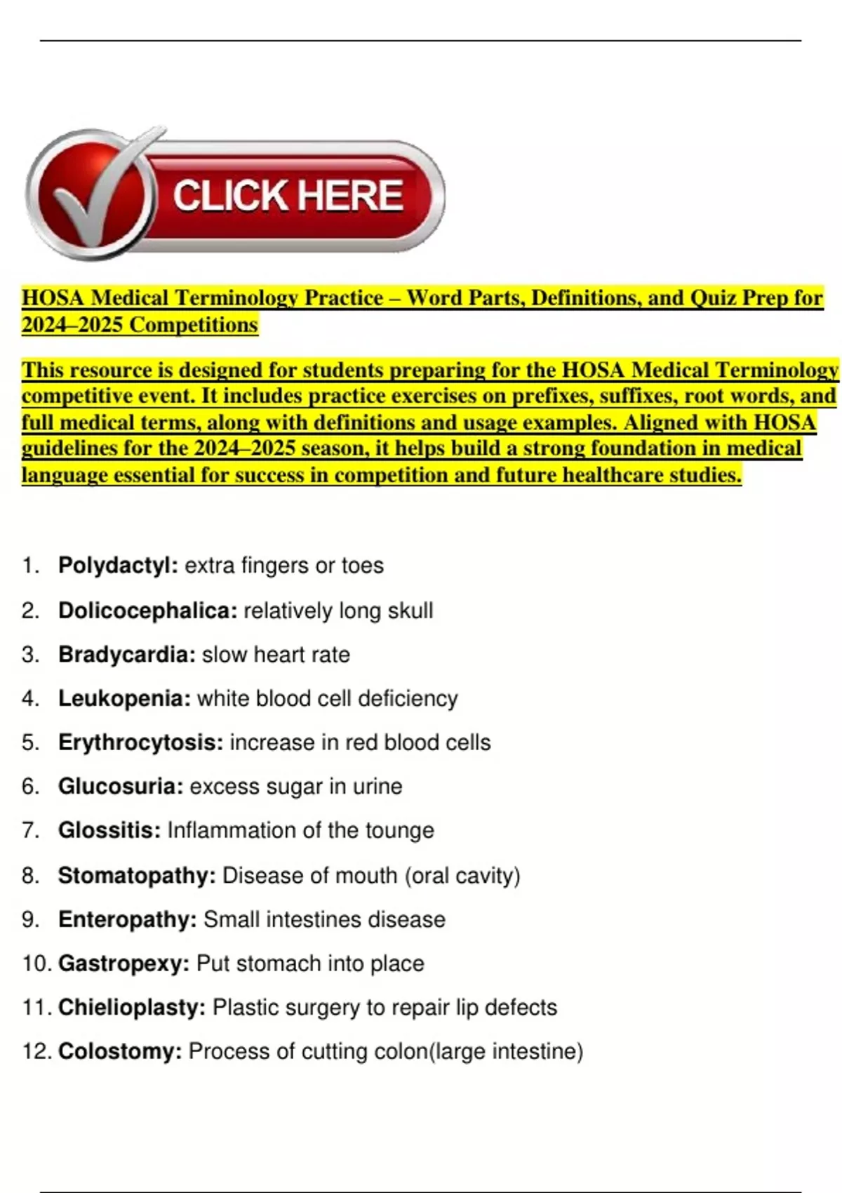 This resource is designed for students preparing for the HOSA Medical Terminology