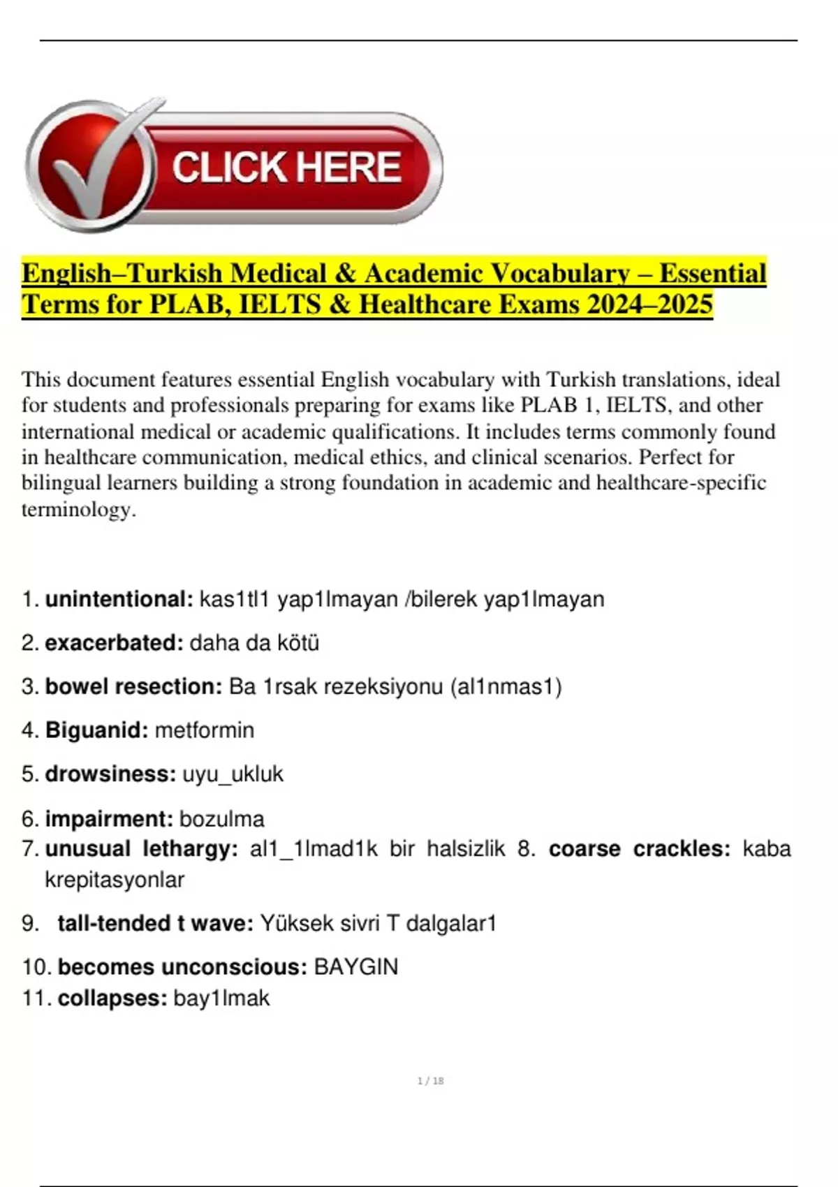 Terms for PLAB, IELTS & Healthcare Exams 2024–2025