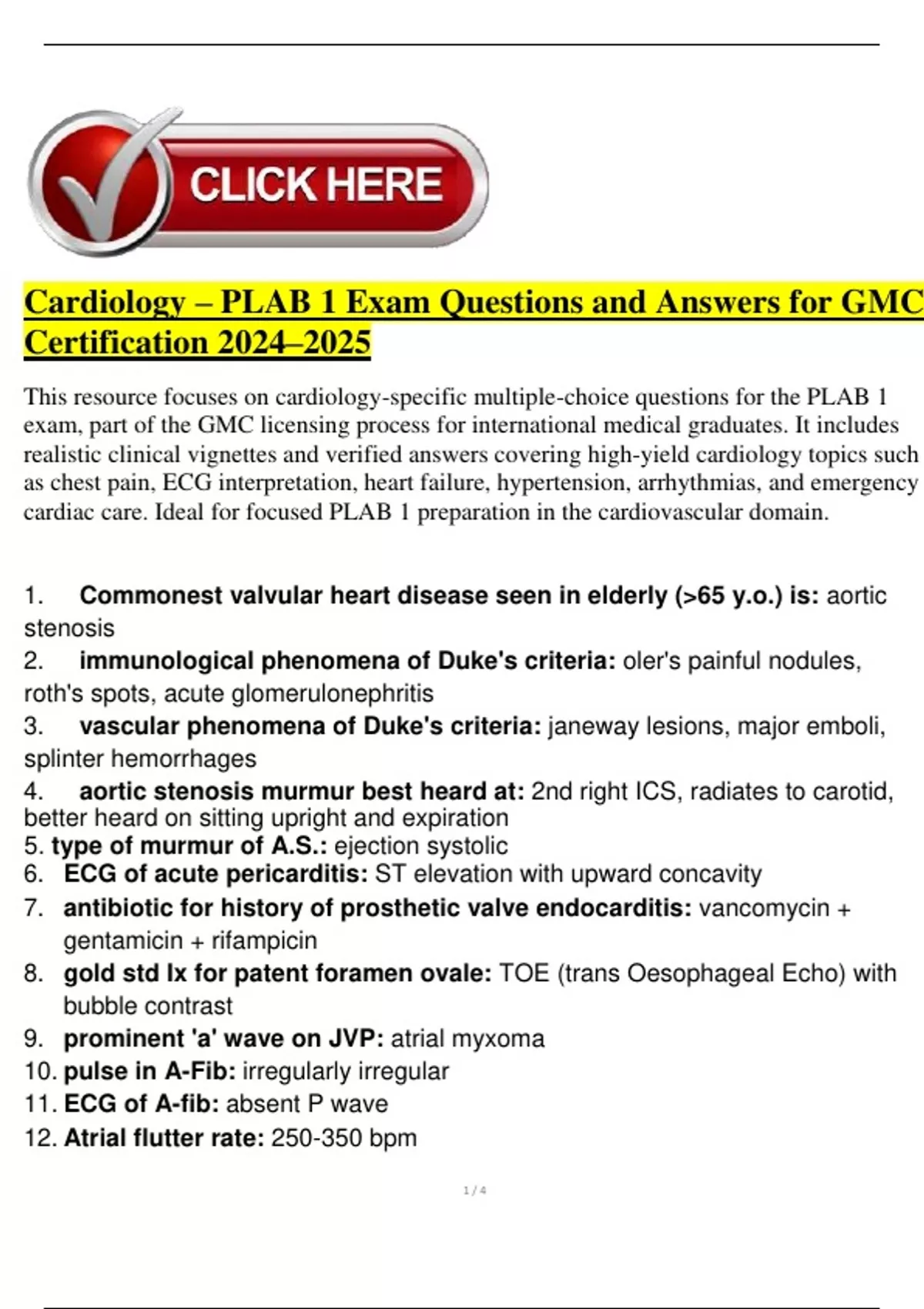 This resource focuses on cardiology-specific multiple-choice questions for the PLAB 1