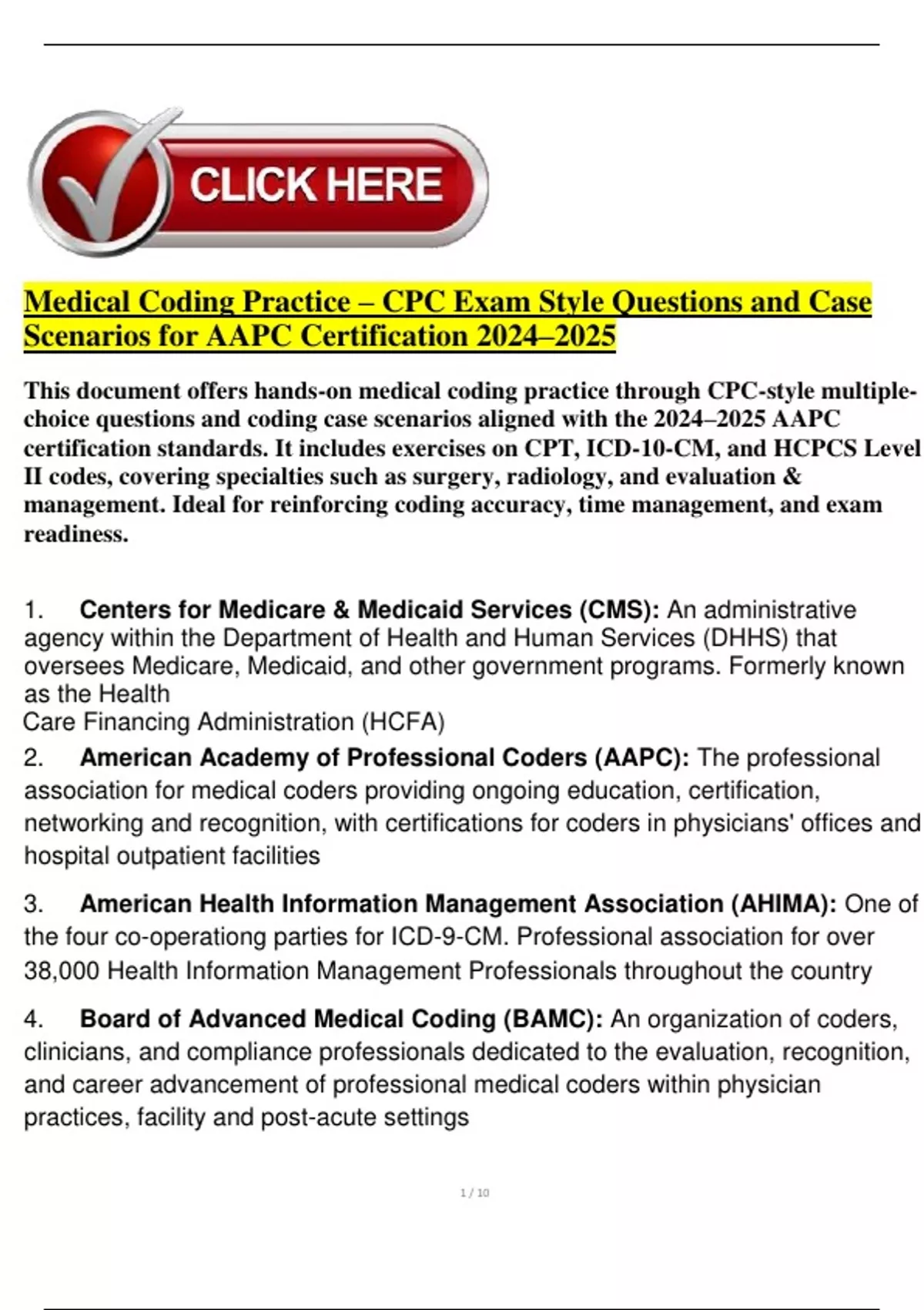 choice questions and coding case scenarios aligned with the 2024–2025 AAPC