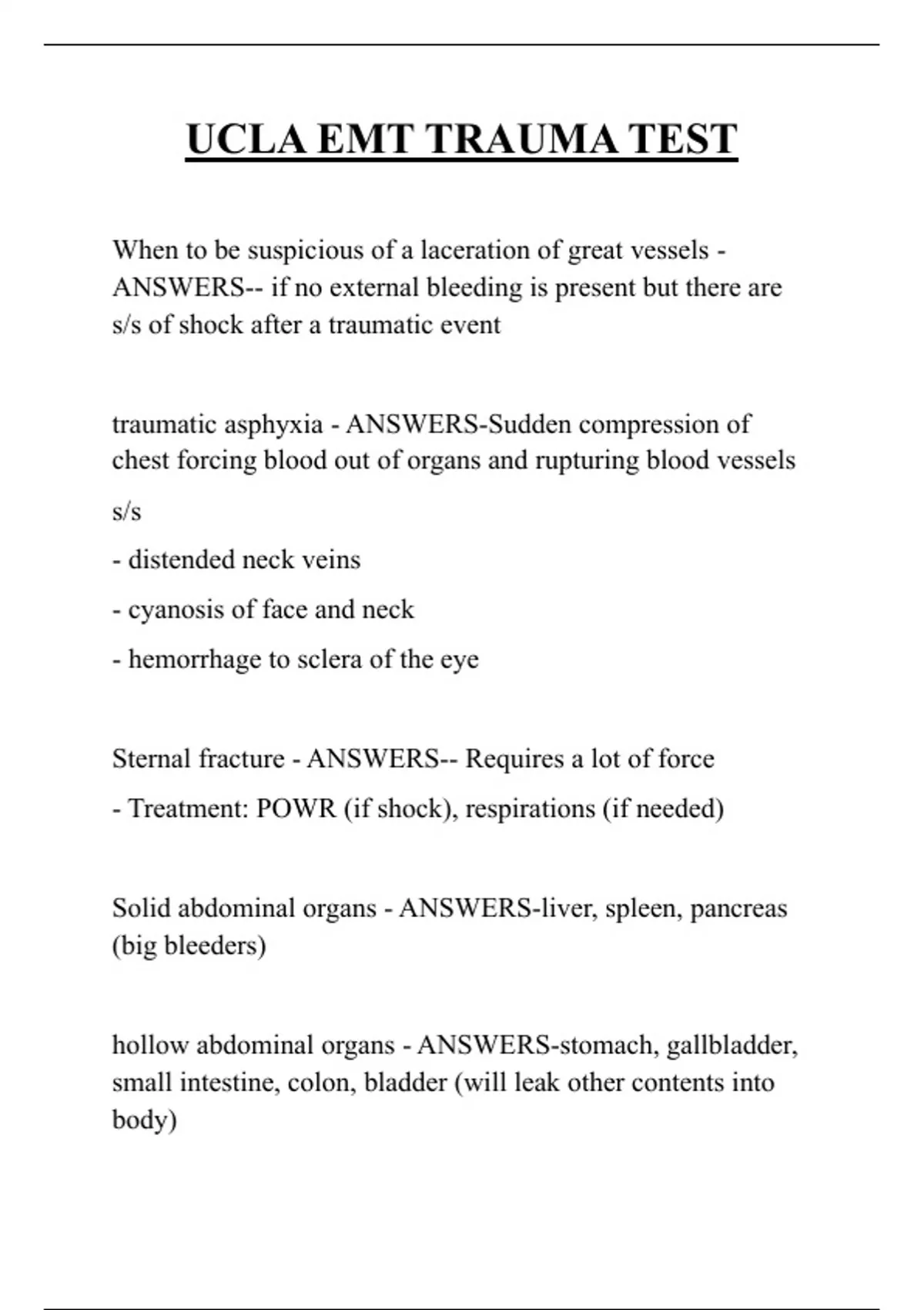 UCLA EMT TRAUMA TEST QUESTIONS AND ANSWERS 2025