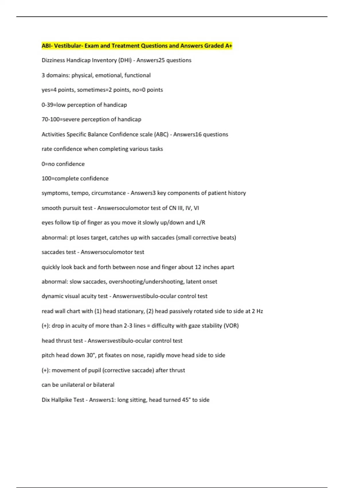 Dizziness Handicap Inventory (DHI) - Answers25 questions