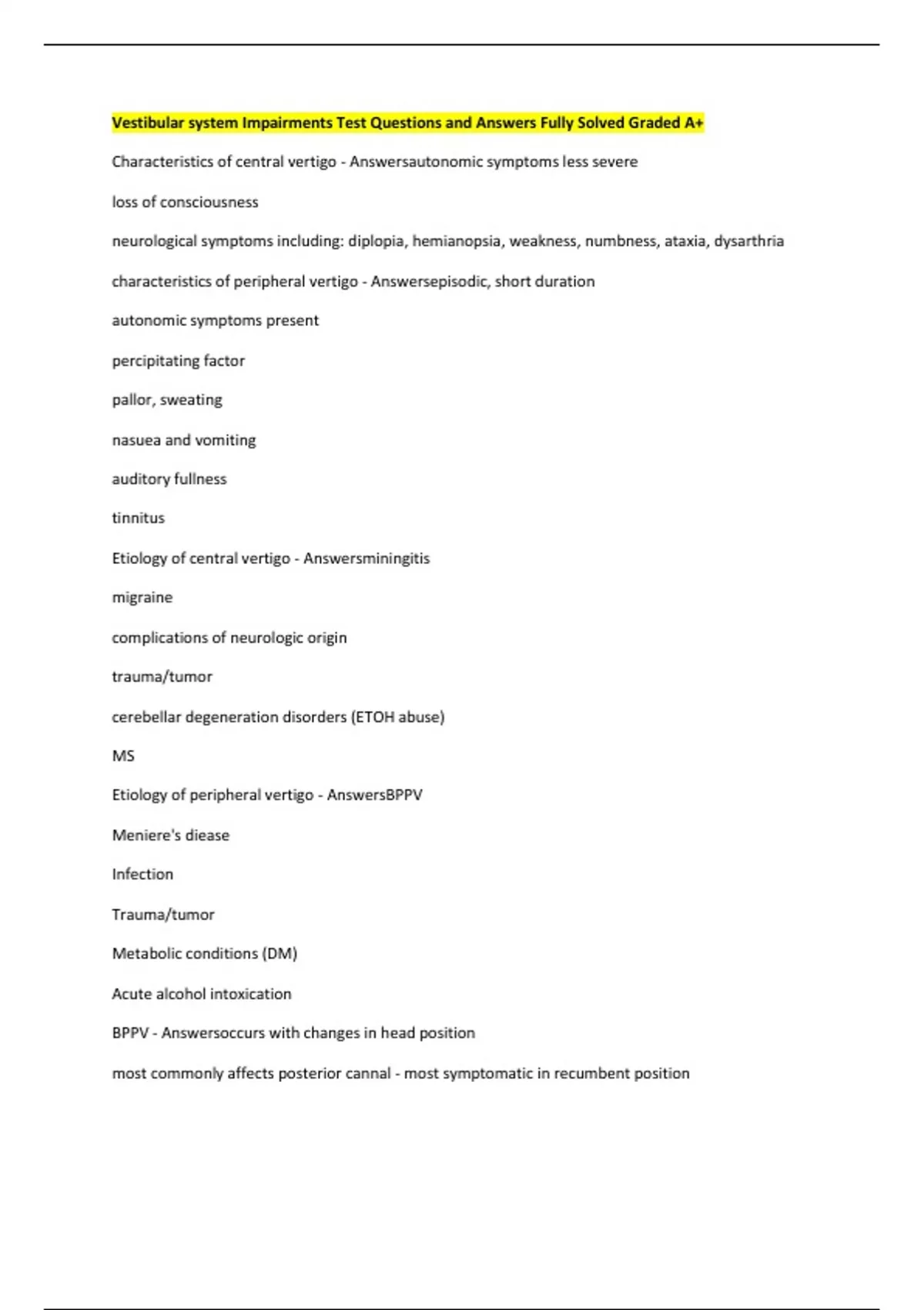 characteristics of peripheral vertigo - Answersepisodic, short duration