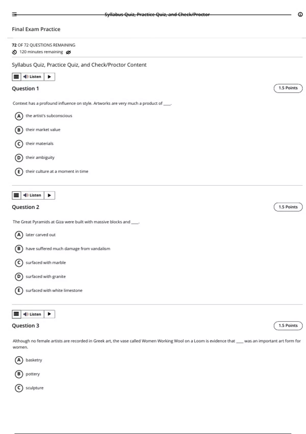 Syllabus Quiz, Practice Quiz, and Check/Proctor Content