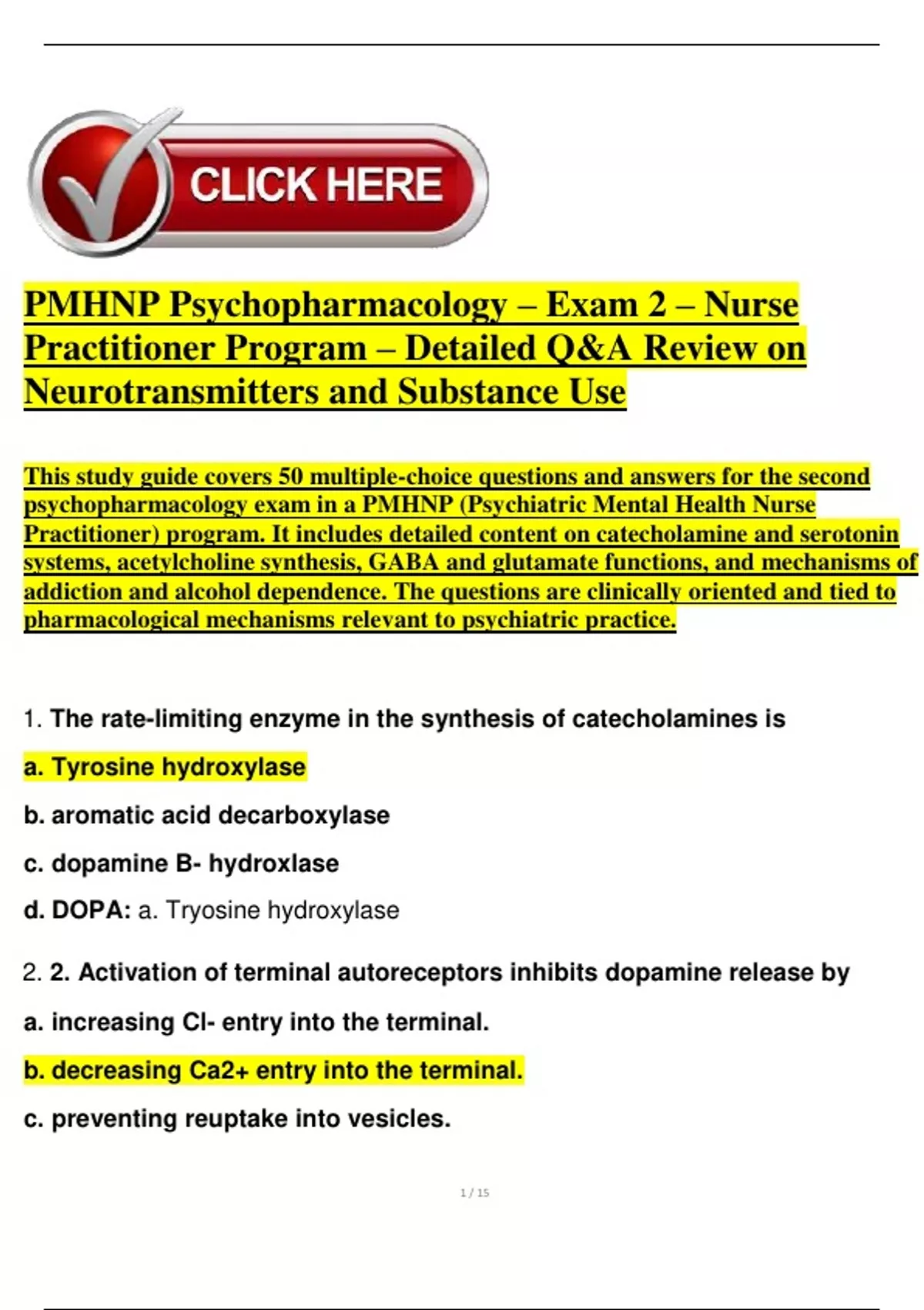 psychopharmacology exam in a PMHNP (Psychiatric Mental Health Nurse
