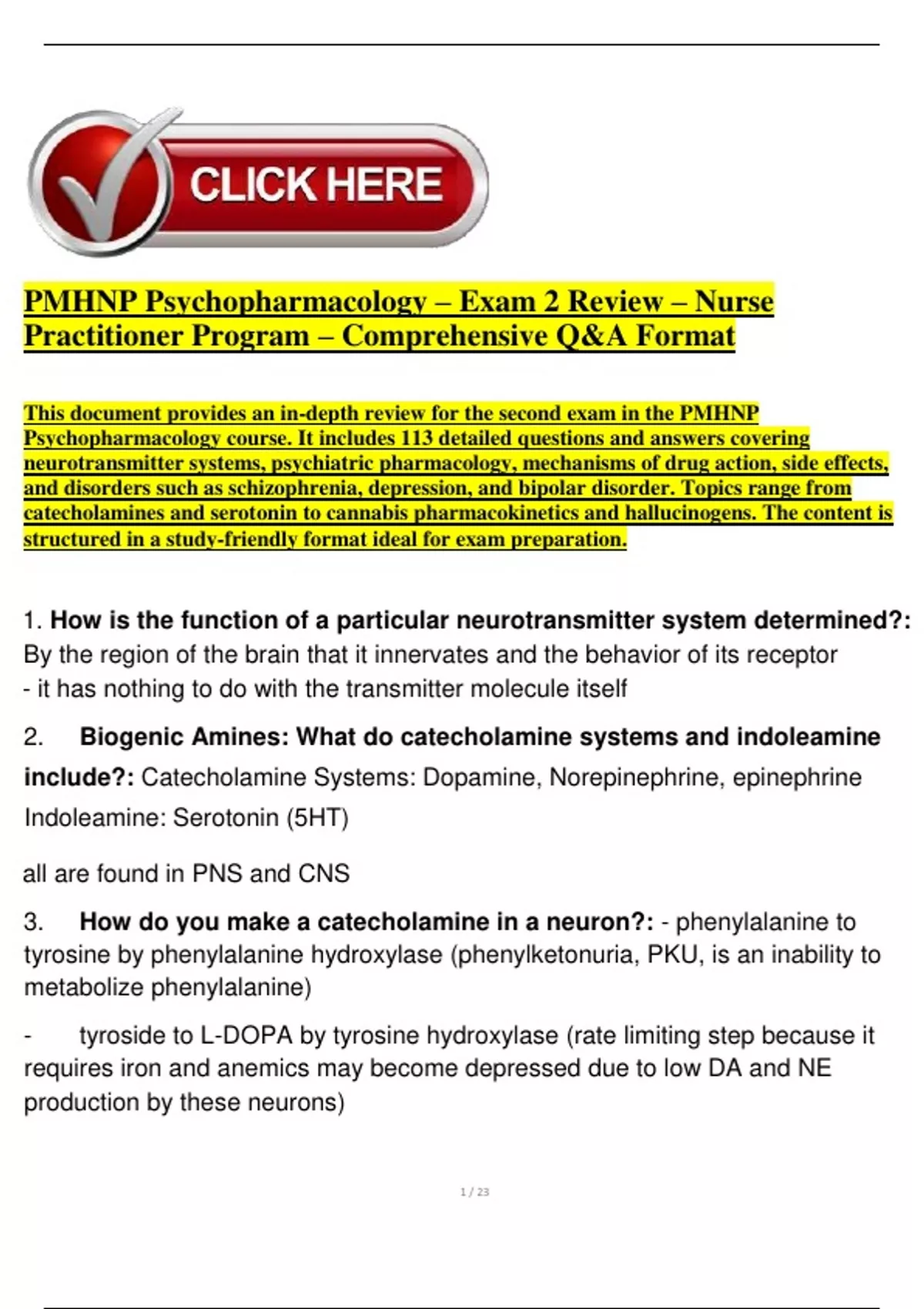 Psychopharmacology course. It includes 113 detailed questions and answers covering